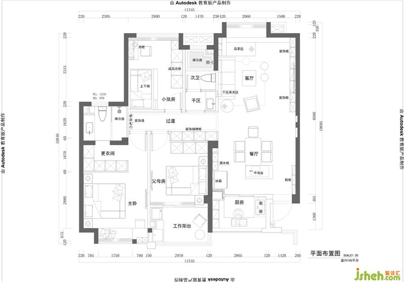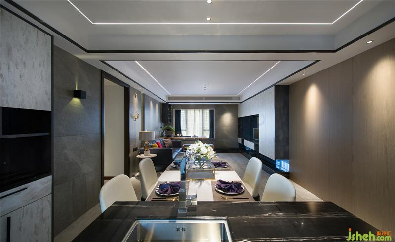 干區(qū)與沙發(fā)背景連為一體“借”客廳的一縷光線使整個空間更顯得通透,從干區(qū)往客廳看增加了美感,在不同光線的作用下,自然細(xì)密的肌理顯露出不同層次的色彩,方寸間勾勒出碎碎念與小歡喜,層層鋪開溫馨的生活碎片。