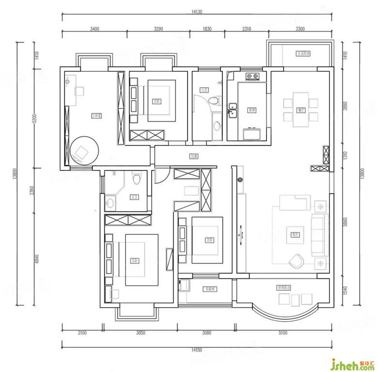 主臥的軟裝搭配色彩延續(xù)客廳的顏色,白色的墻體,搭配舒適的灰色床品及枕頭。