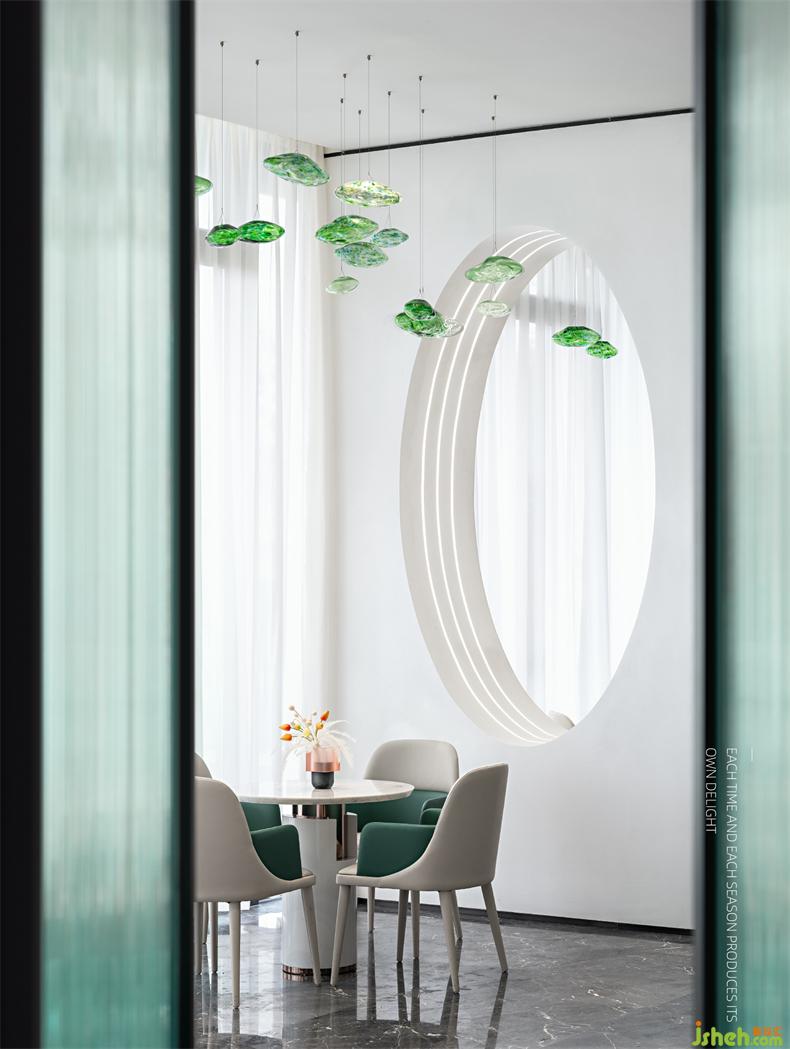 哪怕是小空間,南昌售樓處設(shè)計(jì)也在不斷強(qiáng)化對自然的喜愛:躲于屏風(fēng)外的迷兔,就像居于此的人們那般泰然自若的人性態(tài)度的自然流露。同樣的太陽,大人看見的是照亮了周圍,而“孩子”的眼睛里,室內(nèi)設(shè)計(jì)師太陽卻直達(dá)他們的心靈深處。