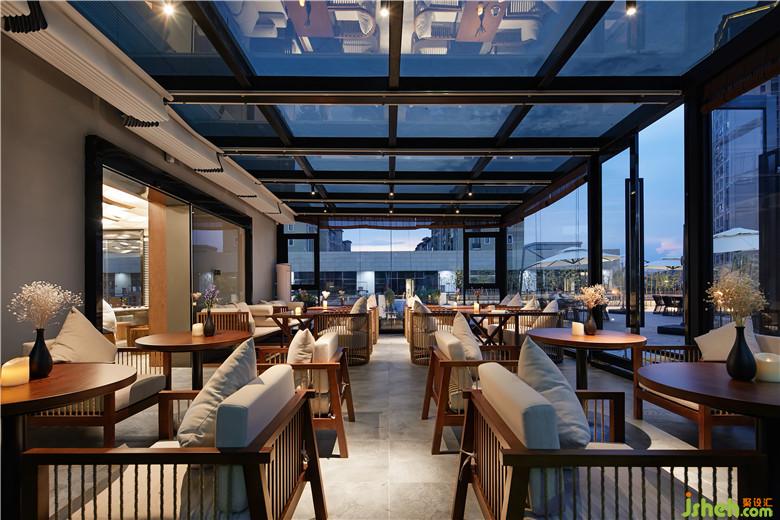 酒店共設(shè)33個房間,親子、大床、標(biāo)間等各類房間數(shù)量比例適中,符合當(dāng)?shù)芈每偷木幼∏闆r。酒店共設(shè)有兩個入口,酒店主入口正對商場電梯,另一則是陽光房與室外陽臺的連接口。酒店的主入口采用向室外開放的設(shè)計(jì),大面積落地玻璃,酒店內(nèi)景直接映入眼簾,靜謐之感油然而生。我們將室外陽臺的入口處的房間設(shè)計(jì)為陽光房,為酒店內(nèi)的客人提供餐廳休閑交流場所,客人也可以在這兒喝喝咖啡,享受陽光的沐浴。寧可食無肉,不可居無竹。竹竿修長而挺拔,青翠的竹葉蘊(yùn)含無限生機(jī),室內(nèi)設(shè)計(jì)師將竹融入酒店外部景觀設(shè)計(jì)之中。白墻,紫竹,讓人仿若置身竹海。沿著酒店外沿的過廊,設(shè)計(jì)師創(chuàng)想了一條觀景面極佳的全景綠色長廊,使外部廊道與酒店內(nèi)景變成一個整體。