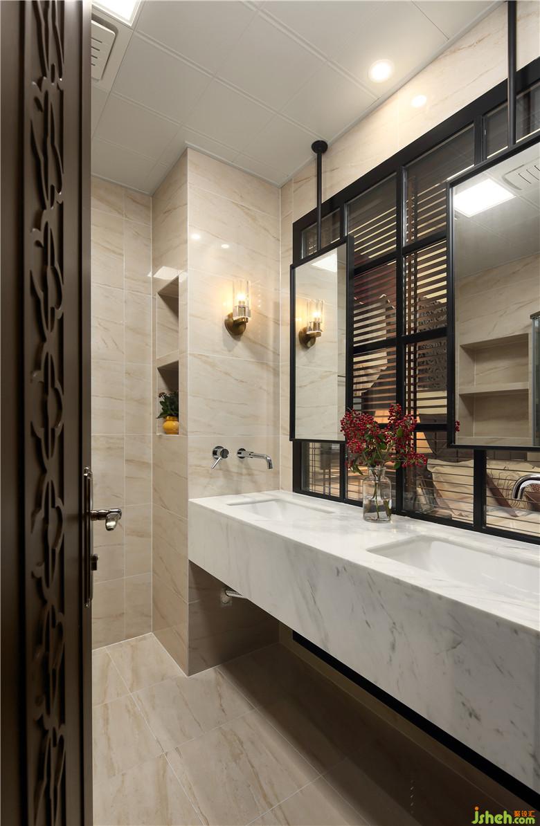 室內設計師主衛(wèi)空間設計了雙臺盆,滿足了兩人同時洗漱的需求,連梳妝鏡都是雙人份的,可以說是十分體貼了。
