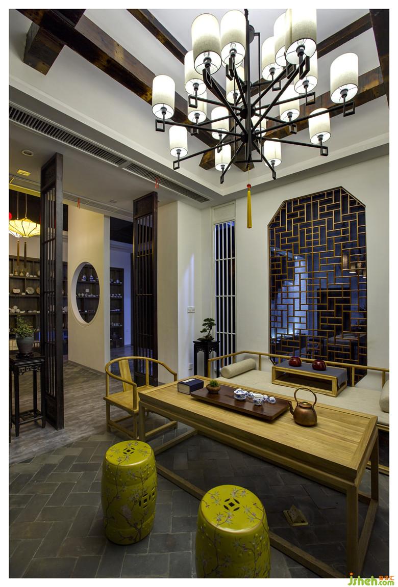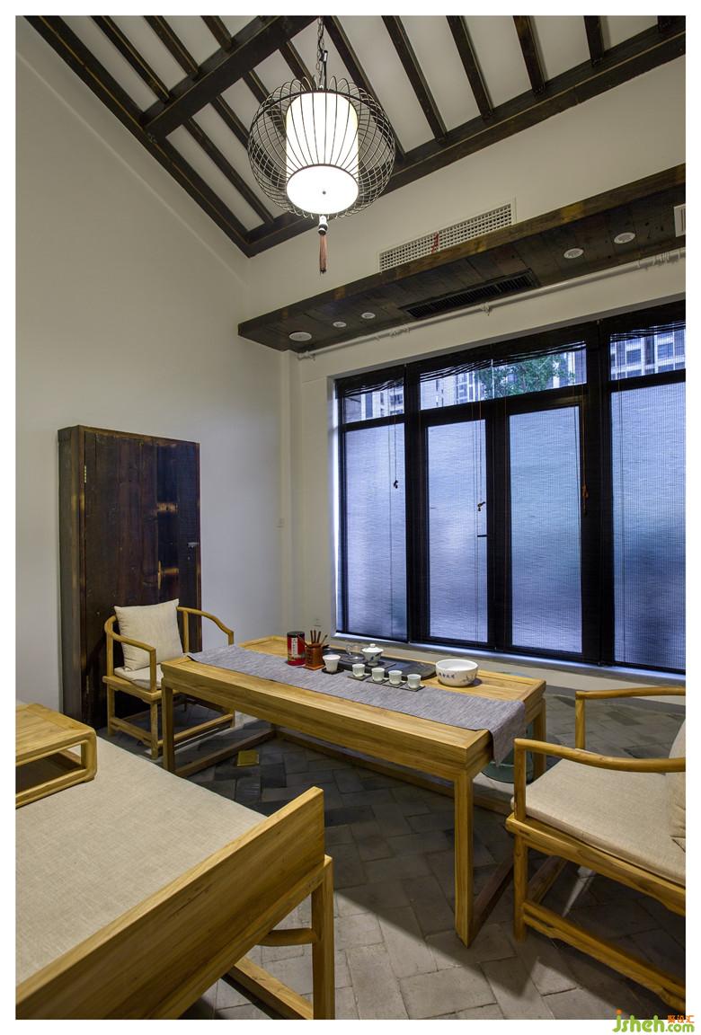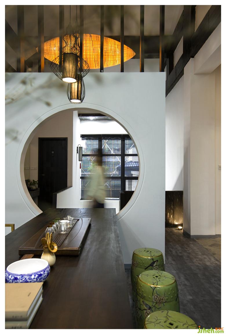 轉(zhuǎn)彎處,四間茶室以琴、棋、書(shū)、畫(huà)為名。置身茶室,琴案上的古琴弦緊若游絲、材質(zhì)上乘,一指空靈,隱隱傳來(lái)或低沉或清如濺玉的琴聲,攜幾知己情致所致,聞琴品茗,豈不快哉。棋如人生,以棋為名的茶室,早已設(shè)好棋局于墻面,靜待有緣人來(lái)解局,圍棋愛(ài)好的茶友們喝茶對(duì)弈,棋逢對(duì)手引為知己,知音難覓,在這兒或許實(shí)現(xiàn)了呢。藏書(shū)的茶室,宛若開(kāi)辟了一片書(shū)海,精心收藏的古書(shū)、竹簡(jiǎn)刻書(shū)涵蓋了天文地理、周易八卦、圣賢君王等等,包羅萬(wàn)象,一應(yīng)俱全,有興致的茶友們還可以一展篆刻技藝。以中國(guó)水墨畫(huà)卷、書(shū)法作品為主的茶室,供書(shū)畫(huà)愛(ài)好的茶友們品鑒欣賞,內(nèi)設(shè)公共區(qū)域的長(zhǎng)案臺(tái)為現(xiàn)場(chǎng)書(shū)畫(huà)而備,悠悠書(shū)香,點(diǎn)點(diǎn)墨趣,與書(shū)為友,與友為樂(lè)。琴棋書(shū)畫(huà),詩(shī)酒花茶,每一個(gè)空間獨(dú)立而又相互關(guān)聯(lián),似乎都在低訴著各自的故事,洋溢著迥然不同的文藝氣息。而細(xì)節(jié)之處甚為用心,竹藤編制的紙燈籠、工藝考究的油紙傘、精心甄選的書(shū)畫(huà),無(wú)一不體現(xiàn)空間的氣韻生動(dòng);做舊的木屏風(fēng)、亞麻的門(mén)簾布、細(xì)竹絲的窗簾,展示了設(shè)計(jì)的精妙入微,讓這個(gè)水泥結(jié)構(gòu)的房子重獲了新生。