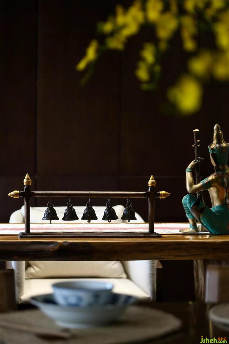 榆木木雕的裝飾畫、古樸的東南亞民族風(fēng)情不彰自顯。