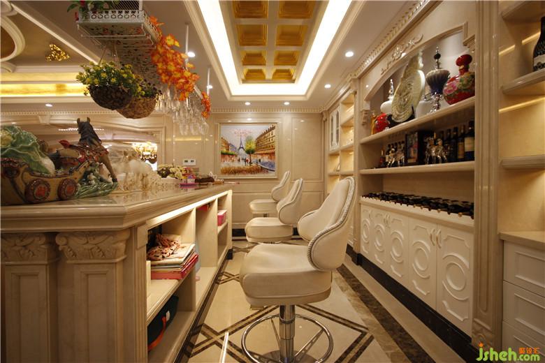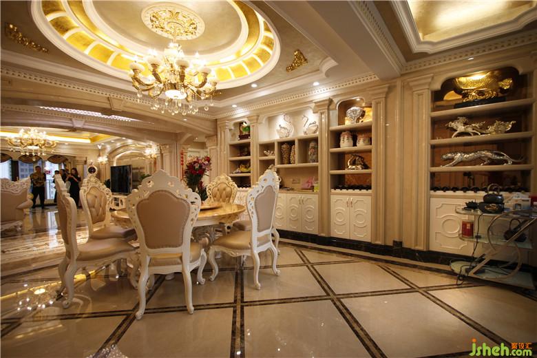 室內(nèi)設(shè)計(jì)師采用全案頂級(jí)莎安娜大理石的運(yùn)用,潤(rùn)澤而富有靈氣,高貴范兒十足,酸枝與花梨鑲嵌的地板。