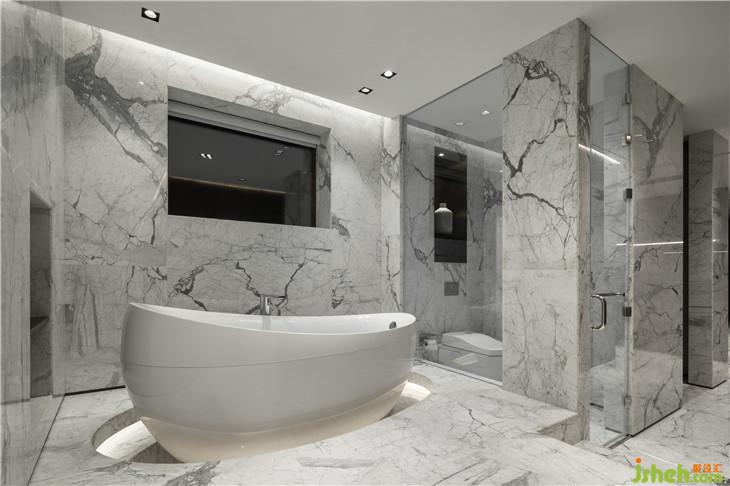 二樓空間的設(shè)定則是僅專屬于一位主人,給予的空間布局是極為享受極為奢華的作法,將原本封閉式的浴室空間打散轉(zhuǎn)換,以一種開放空間的手法,將衛(wèi)浴設(shè)備像是配置家具的概念散落配置在空間中各個區(qū)域,其中包含淋浴間、蒸氣室及獨立缸都以此概念配置,另外加上超大空間的更衣室、影音室及健身房讓整個二樓主臥層,滿足了起居功能及生活興趣、品味的多元空間。