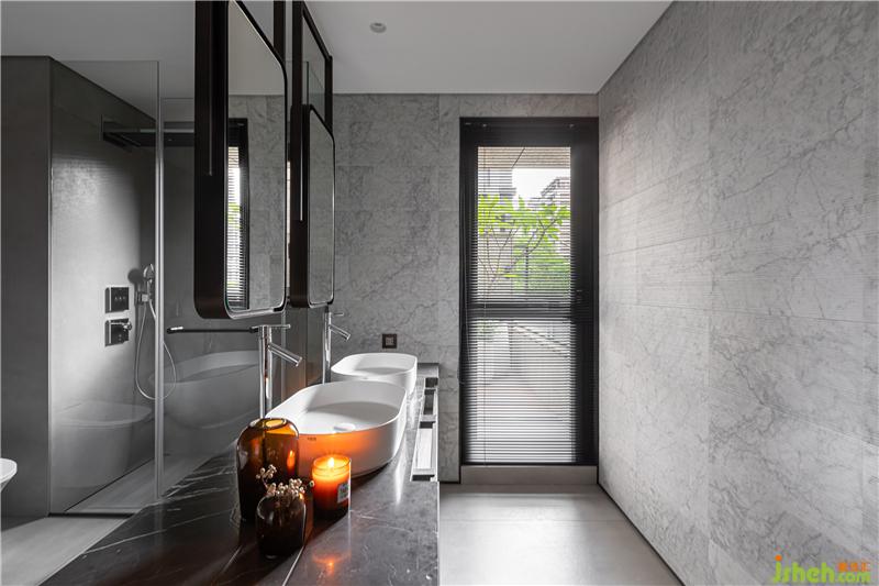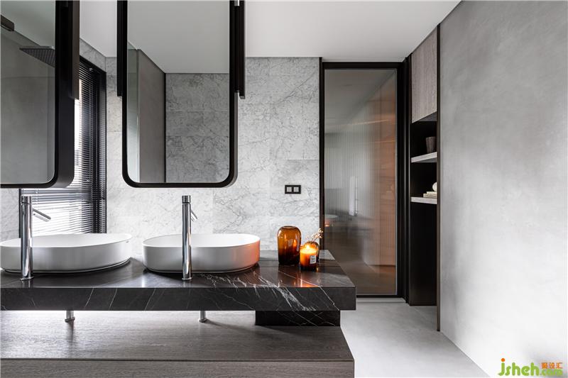 臺式風(fēng)格家居平面規(guī)畫時刻意放大的主臥衛(wèi)浴,舒適性與空間感相對提升。將西廚中島的概念引入,重新思考主臥浴室的空間配置,獨(dú)屬于這個空間的風(fēng)景。水泥灰磁磚的溫潤自然,搭配延續(xù)SAVATORI -Bamboo系列石板的運(yùn)用,光影的層疊細(xì)致而精巧。