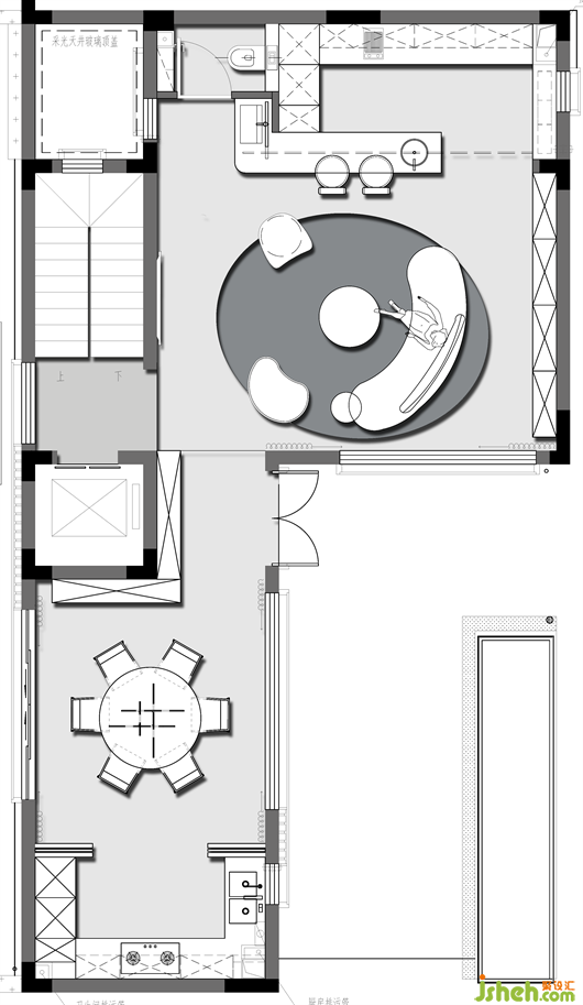 挑高的地下室,以灰色基調(diào)為伊始,結(jié)合線條與金屬質(zhì)感,為空間注入精致與高級感。