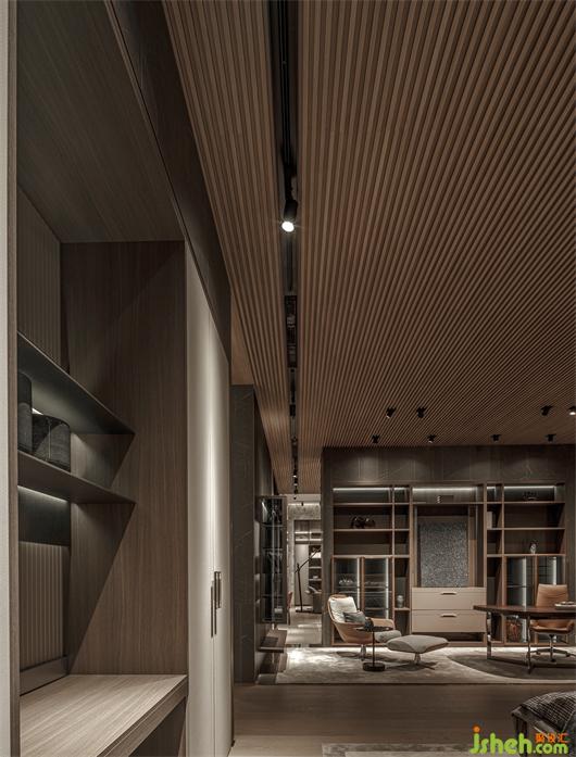 大面積運(yùn)用格柵天花與金屬材質(zhì)搭配