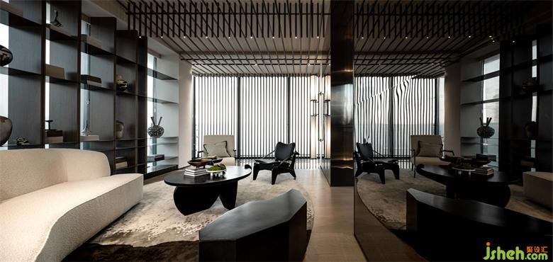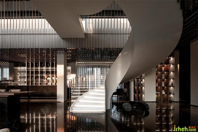 會所設計主色調以大地色系為主通過格柵的應用 對進入光纖重新切割 創(chuàng)造更豐富的體驗效果和視覺效果。斑駁光影不規(guī)則地穿透格柵,時間的韻律化爲眼前的浮光掠影。