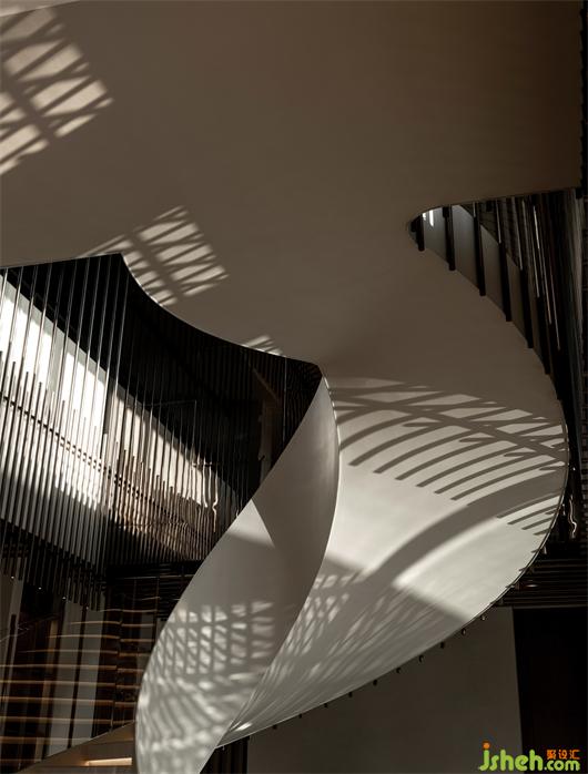 每個格柵都是單獨的壹道景,陣列的結構兼具了包容性。天光如墨,格柵爲筆,讓光影在空間內跳躍嬉戲,將時光具現(xiàn),宛若流動的山水畫作。