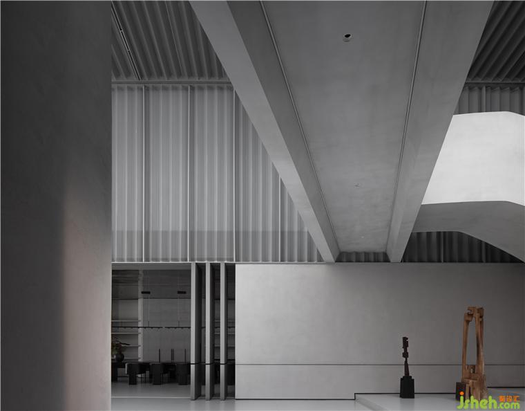 庭院部分的通道解決交通連接問(wèn)題的同時(shí),讓“橋”中的行走,佛山瑪格展廳裝修設(shè)計(jì)擁有了懸浮的穿越和居中的停留,在看與被看間,體會(huì)空間的維度變化。橋的中部有“島”,也有樹(shù)。待晴日,坐看云起,隨時(shí)光而動(dòng)。