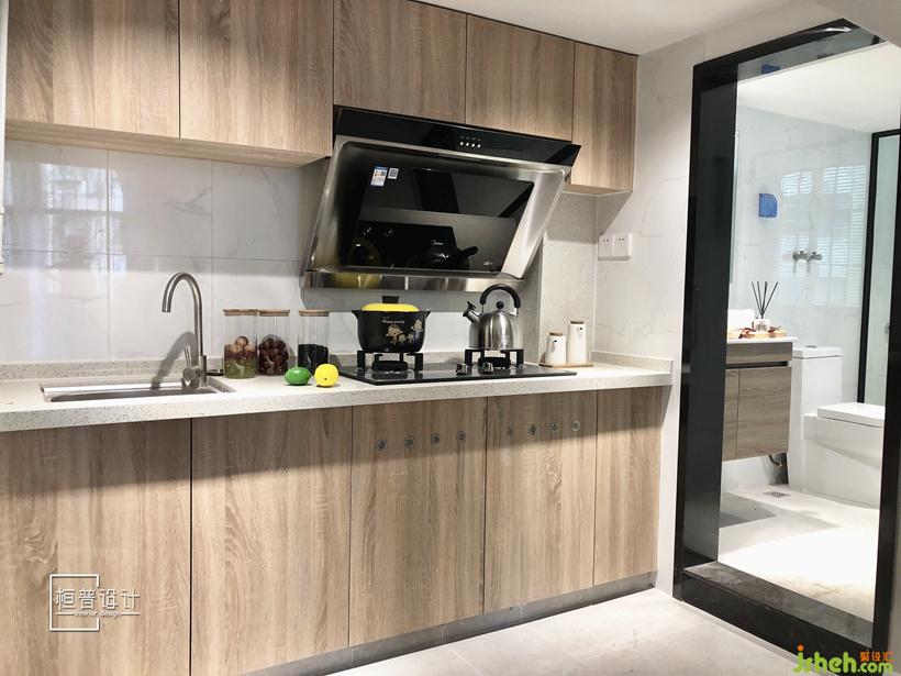 根據(jù)公寓的性質(zhì)以及面積的限制考慮,并沒(méi)有選擇做封閉式的廚房,而是設(shè)計(jì)了簡(jiǎn)單直接的開(kāi)放式廚房,更適合現(xiàn)代年輕人的生活習(xí)慣,讓空間顯得更加的開(kāi)闊。