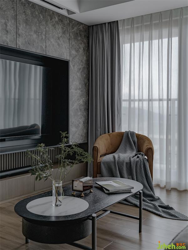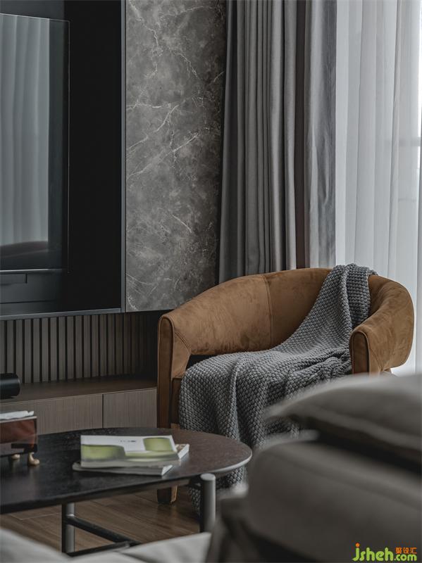 在購置軟裝的時候,業(yè)主挑了一款灰色沙發(fā),頭部可調(diào)節(jié)至與頭部平齊,日??措娨晻r可以防止葛優(yōu)躺。
