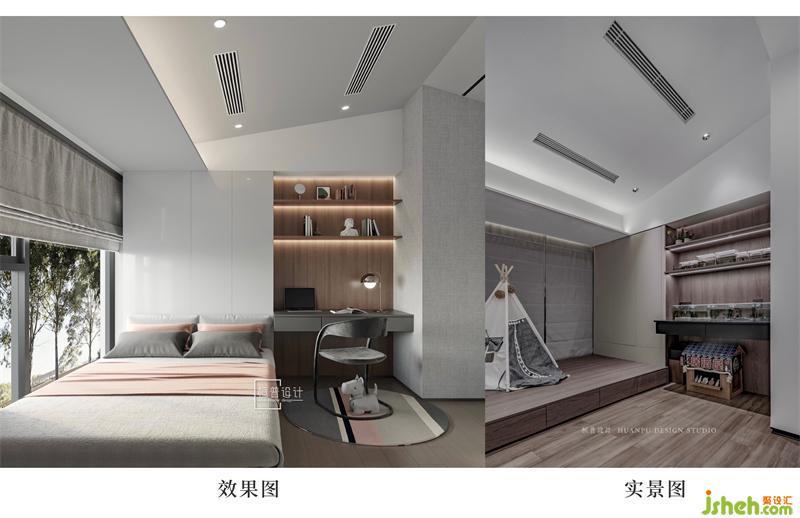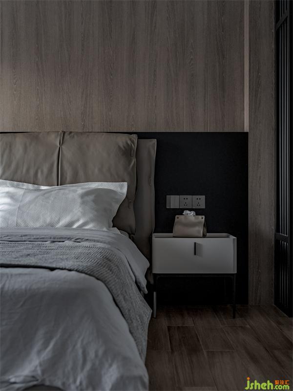 床品選擇了與木飾面相配的棕灰色,很適合長輩居住,有種獨(dú)特穩(wěn)重的氣質(zhì)。
