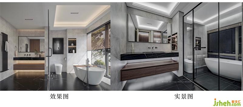 次衛(wèi)采用干濕分離,盥洗區(qū)分體盆用的是黑色巖板,與灰色墻面相輔相成。這里的盥洗盆用的是暗埋龍頭,這個“盆”不像傳統(tǒng)盥洗盆能儲水,因為它是一個斜面,看起來更加精致漂亮。干區(qū)濕區(qū)都有設(shè)計壁龕,可以放置洗浴用品和護(hù)膚品。