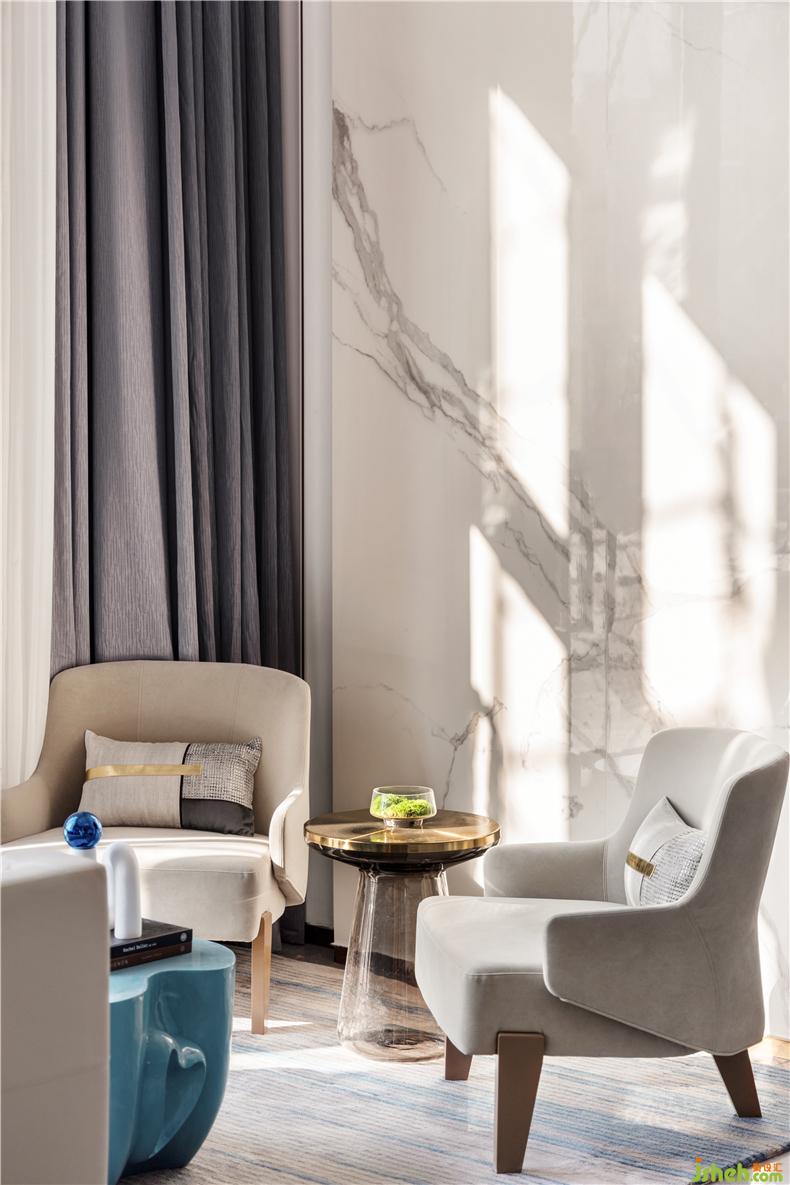 The mirror surface is like the water surface, and there are extremely rich and profound connotations in the calmness. When we are talking about "water", we are actually talking about nature. We talk to the "water" in the design, and the viewers see the true meaning of nature in the space.