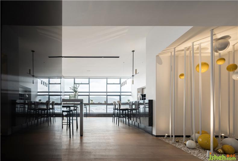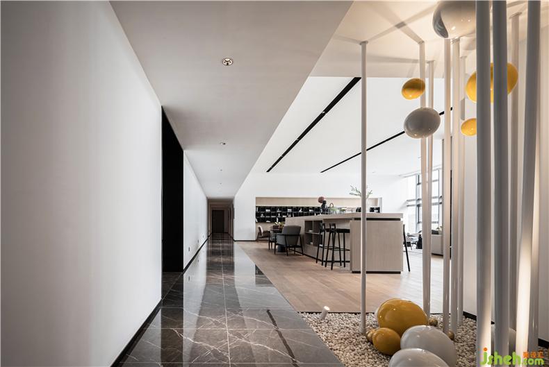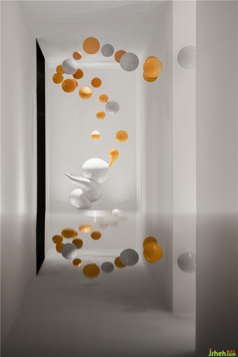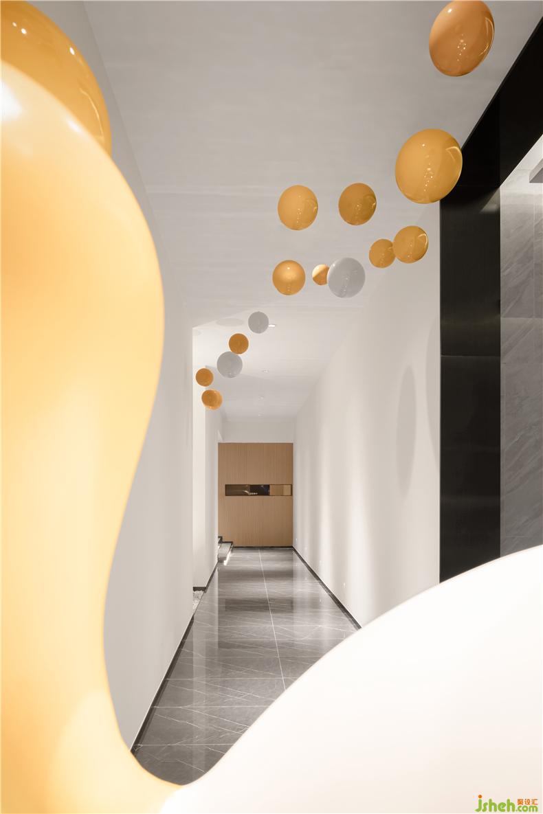 巖石擁有了被時光打磨的形狀,與一抹明黃的亮色為敘事旁白,與前廳的泡泡相呼應(yīng),裝修設(shè)計空間尺度之間蘊藏著微妙的平衡。