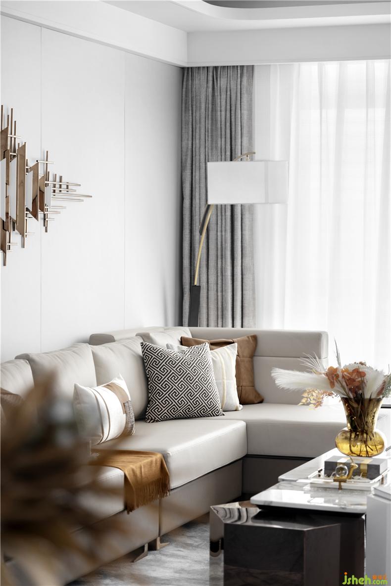 不同體量的色塊在搖曳光影的撫摸下,有閑情,有雅趣,樣板房設(shè)計漸漸地鋪陳出一種詩意。客廳空間整體簡潔明凈,大地色系讓人倍感治愈。