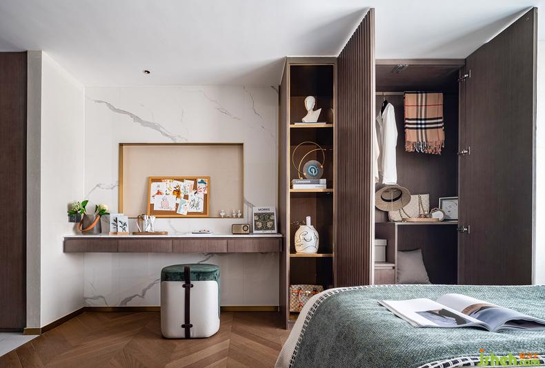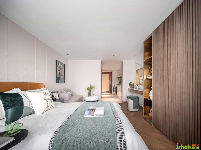 我們通過合理的空間布局、色彩、色條、光線的運(yùn)用等,最大程度的提升居家的生活品質(zhì)。入墻式衣柜根據(jù)房屋尺寸進(jìn)行定制,利用率極高,與整個墻融為一體