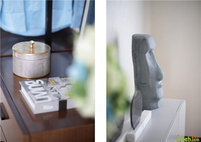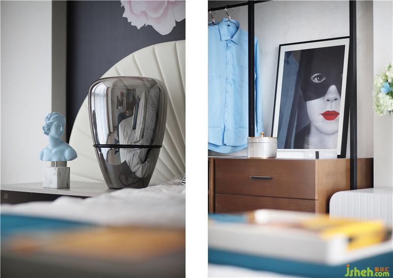 整體的床相接大幅噴繪,讓真?zhèn)€空間大氣中帶著安靜,更適合身體和心靈休息。電視柜上放著她喜歡的掛畫和他精心挑選的物件,沉思安靜。旁邊的衣柜兼儲(chǔ)物柜滿足了整個(gè)空間的收納;為第二天的工作提供了一個(gè)很好的衣服準(zhǔn)備。裝修公司