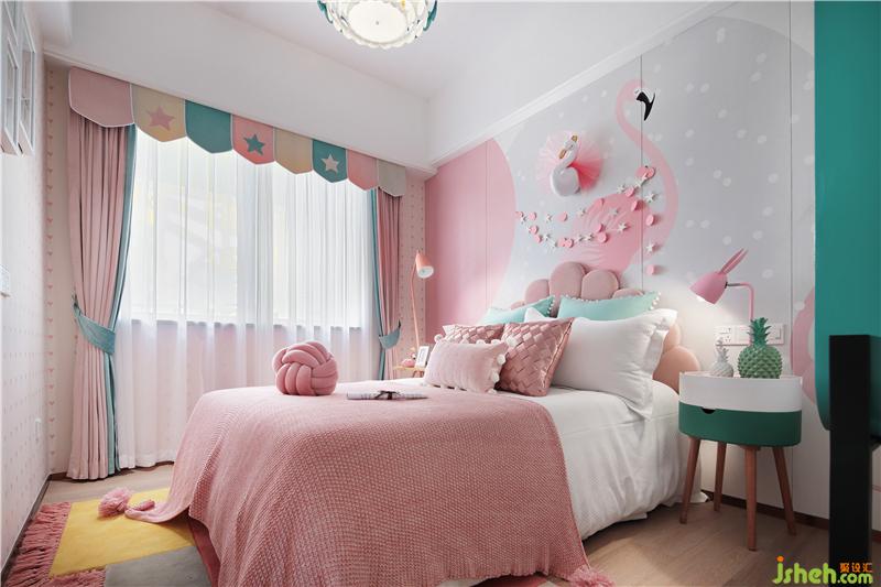 女兒喜歡看童話故事,喜歡看動(dòng)畫片(火烈鳥的驕傲),墻面火烈鳥的噴繪,拉高了整個(gè)房間的空間感,給她想要的童年是父母給與最好的愛(ài)護(hù),粉底色色調(diào)結(jié)合點(diǎn)綴的五顏六色其它物品,是女兒最愛(ài)呆的地方。裝修公司