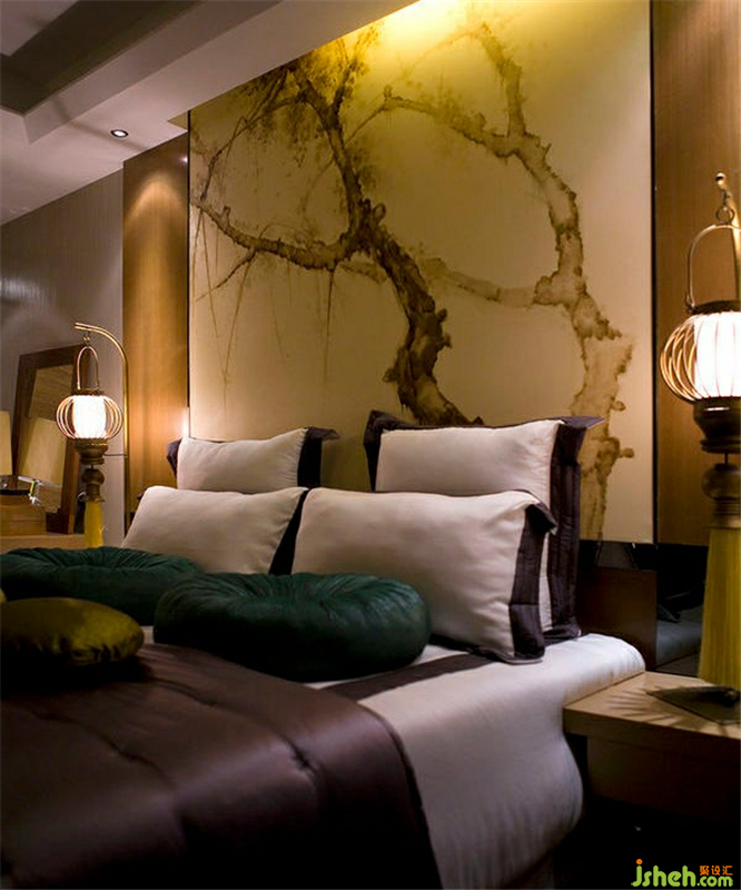 實(shí)物的立體掛畫,帶有中式中式圖案紋樣的背枕。室內(nèi)設(shè)計師