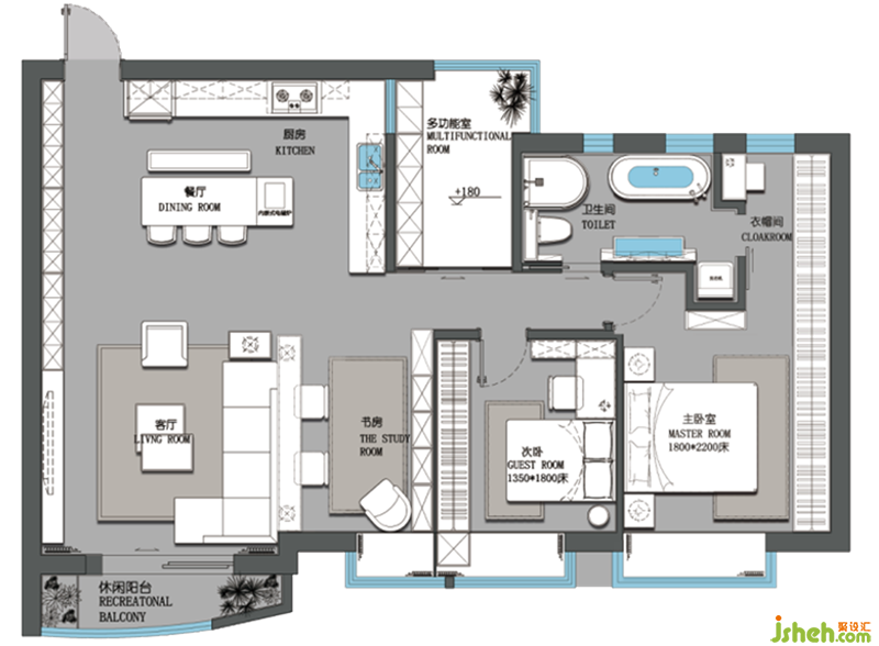 1.把客廳和餐廳及廚房全打開,加大空間的互動(dòng)性。2.將書房和客廳互通,上方用玻璃隔斷,加大客廳的通透性,與開敞的餐廳有很好的形式一個(gè)整體。3.原有的兩個(gè)衛(wèi)生間我們打通了做了個(gè)兩側(cè)門可開可合的空間。4.業(yè)主希望能有安靜又不被打擾的獨(dú)處空間,安靜下來的時(shí)候能彈彈鋼琴,享受這份美好的獨(dú)處 —— 多功能房。