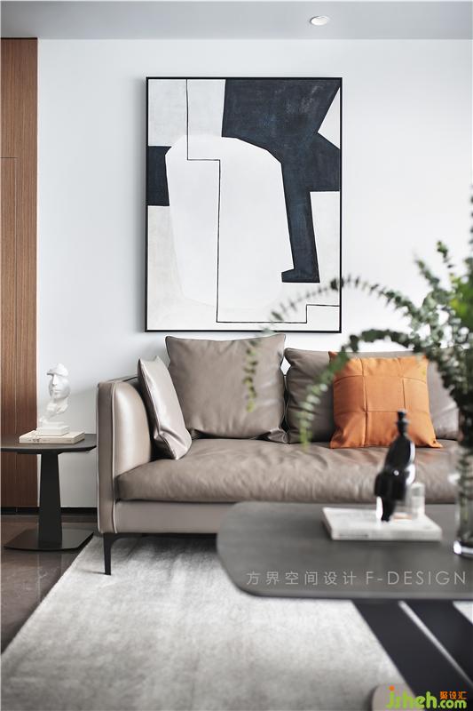 皮質(zhì)松軟的深色沙發(fā)搭配上沉穩(wěn)內(nèi)斂的茶幾,讓整個客廳恩賦予極簡、寧靜、沉穩(wěn)的氣質(zhì)。沙發(fā)上小憩,或是席地而坐,細(xì)細(xì)品一杯清茶,感受生活的美好。