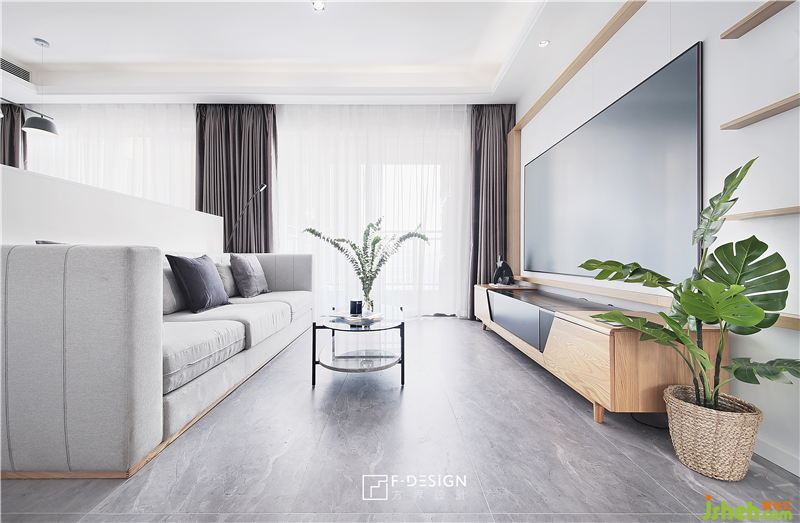 客廳延續(xù)了整體的簡約優(yōu)雅,光線透過紗簾,自然光通透整個客廳的空間;清風徐來,安適自在。