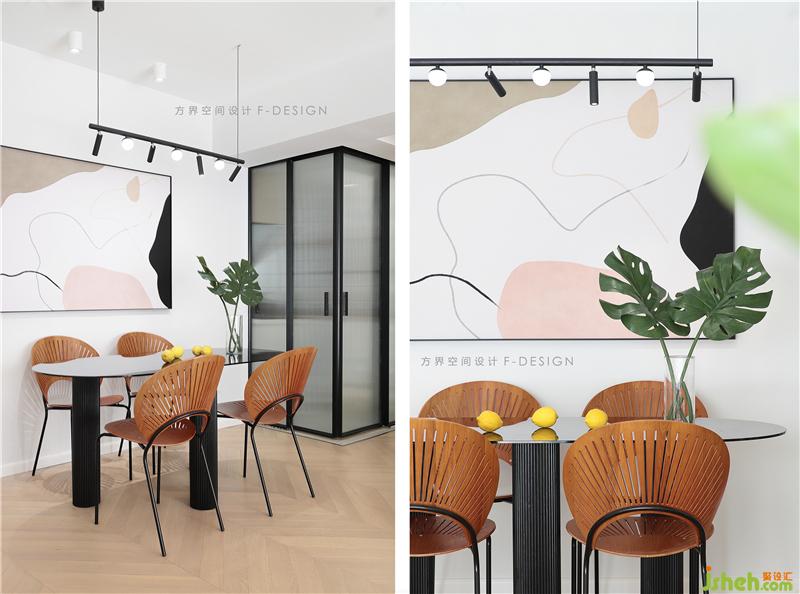 每一把椅子都是家里的藝術品,曲線的優(yōu)雅,鏤空的設計,餐桌上方吊燈的光線穿透椅子,呈現(xiàn)出扇形的光影。