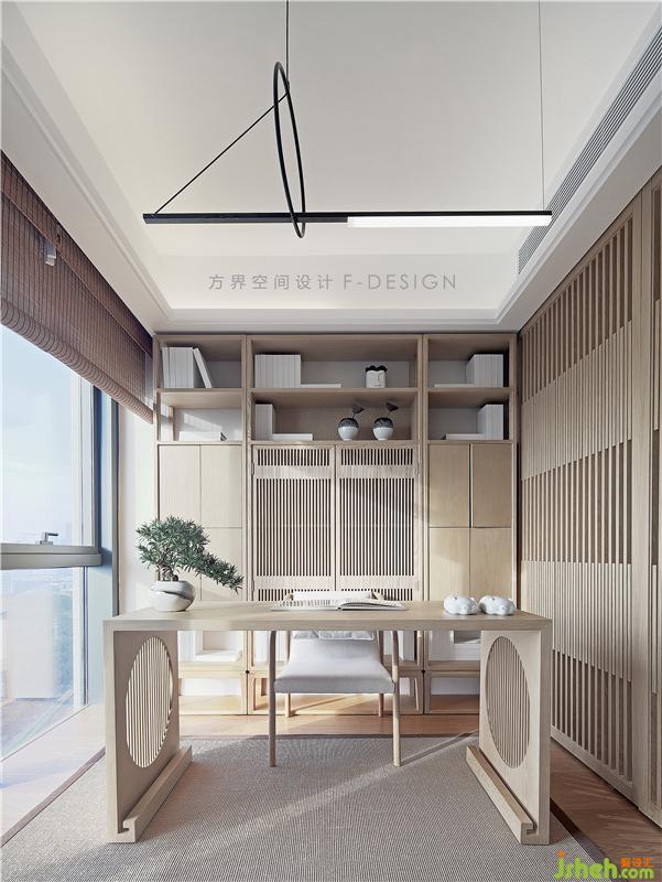 靜坐書房,翻閱書籍。書房采用大量做工精細(xì)的實(shí)木家具,茶臺(tái)背后的木柜精美的分為多格,既滿足了藏書要求,又營造出古樸的氛圍。