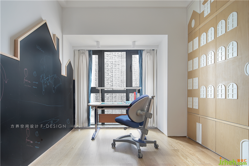 兒童書桌臺(tái)滿足孩子日常的學(xué)習(xí)生活。進(jìn)門右側(cè)極具裝飾性和趣味性的裝飾柜,滿足了物品的收納功能。