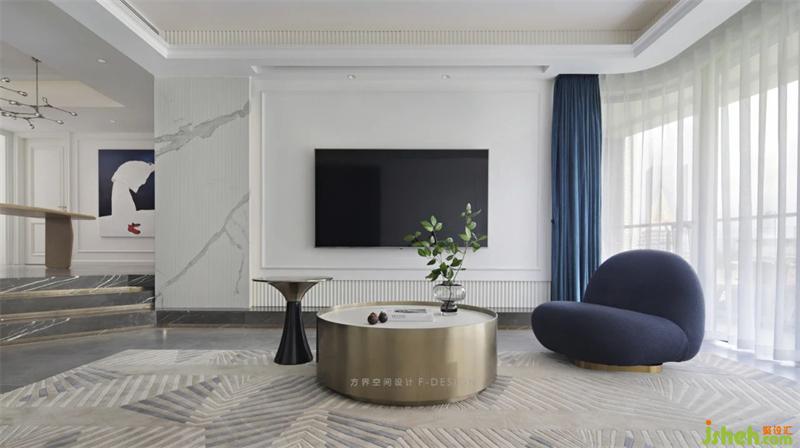 客廳空間處理上,設(shè)計(jì)師找到了最合適的比例關(guān)系,運(yùn)用各種材質(zhì)進(jìn)行穿插重組,通過(guò)序列的設(shè)計(jì)語(yǔ)言,讓整個(gè)客廳空間主次分明,增強(qiáng)了空間節(jié)奏感的體驗(yàn)。