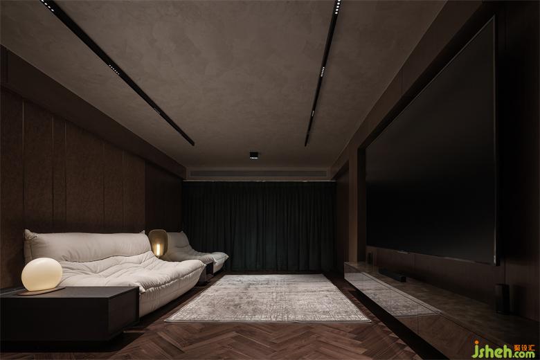 影音室,休閑工作兼得,在這個私密的空間裏,TRID添睿室內(nèi)設(shè)計空間簡約,色彩深沈,可以在此盡情享受視覺盛宴及舒適的生活氛圍。