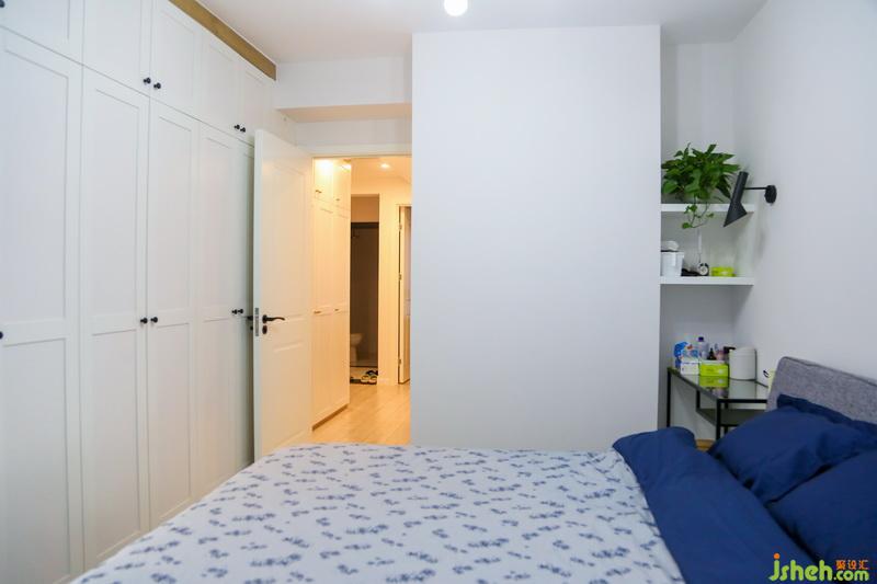主臥的超大衣柜藏身于門后,入墻式的設(shè)計夠大、夠隱形,與整個墻面完美融合。