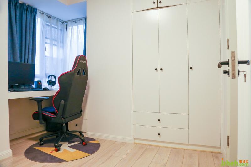 書房取消了實用性不強的飄窗,改成了一個超爽的轉(zhuǎn)角大書桌。配上全套裝備和一把超帥的電競椅,這里是男主人的吃雞“戰(zhàn)場”。