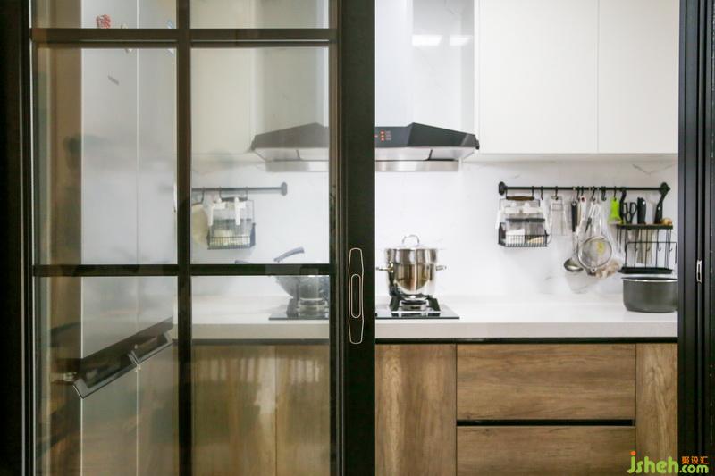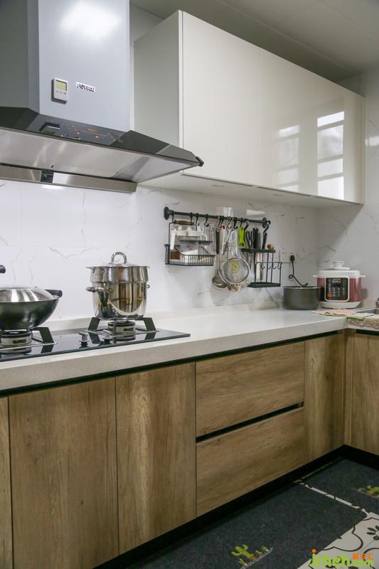 廚房的收納能力也是max!U字形地柜+吊柜+各類掛桿掛鉤,每一部分都帶有強大的收納功能,白色的臺面十分便于打理,廚具存放完全沒有煩惱。
