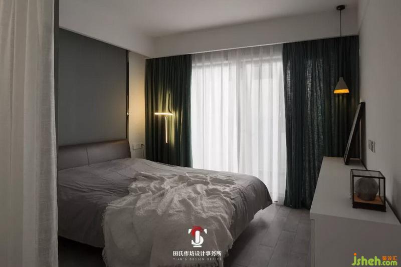 當(dāng)代藝術(shù)與臥室空間相遇,碰撞出別開生面的意象,墨綠與黑白灰的配色,安靜沉穩(wěn)而又不失格調(diào),設(shè)計(jì)感與舒適感的交融,疏簡(jiǎn)素淡的內(nèi)涵。