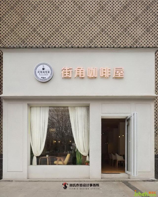 從門店外觀來看,室內(nèi)設(shè)計師以最簡單的暖白色作為底色,棕金色的亮面圓體的大字作為門店的招牌,黑白簡約的圓形咖啡屋LOGO彰顯著本店的風(fēng)格和店主的品味。半落地的巨型飄窗可以讓路過的人們清晰明了地看見店內(nèi)的裝飾,與此同時,坐在窗邊的客人們也能在享受咖啡的時候看看窗外街邊的人來車往,在能忙碌的鬧市之中有片刻休憩之地,而自然,清透明亮的窗戶也將室外的光線帶進(jìn)室內(nèi),使咖啡屋內(nèi)部更加通透敞亮。