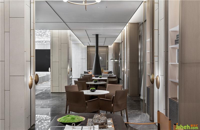 將場景化閱讀與商業(yè)空間完美融合,營造出一個沉浸式閱讀情境,圍爐而坐,品茶品書品人生。售樓處設(shè)計