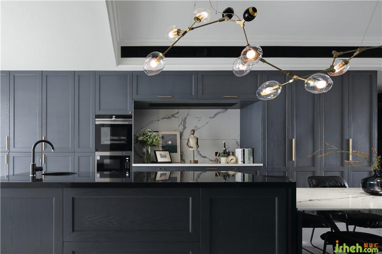 西廚的設(shè)計(jì)是本案比較重要的部分,邊側(cè)的操作臺(tái)面可以放置一些西廚電器,島臺(tái)利于操作,將原先次臥室的墻體往里推,從而讓柜體得到更加深的儲(chǔ)物空間。西廚的柜門涵蓋了原先的柱體結(jié)構(gòu)包括真實(shí)的儲(chǔ)物空間,讓柜門作為裝飾貫穿整個(gè)餐廳,并采用芬琳漆木器漆噴涂使其和乳膠漆同色具有更好地質(zhì)感和整體性