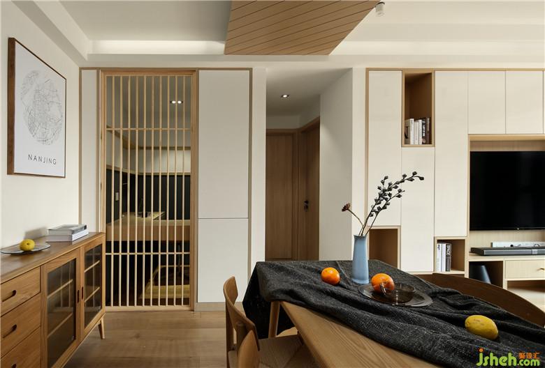 ▲大量的木與白以無造作的色彩構(gòu)筑北歐+日式自然風(fēng)尚(全屋柜體均為現(xiàn)場制作),同色系的白墻與白色烤漆柜門(外定),襯托出木色柜體的肌理線條。