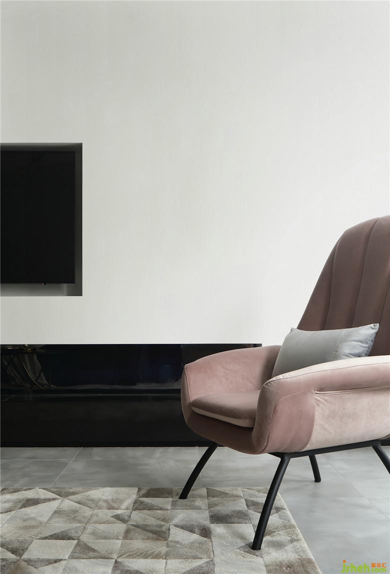 ▲從陽臺向客廳望去,室內(nèi)設(shè)計師以飾面板為分界包裹的餐廳區(qū)域——從立面到頂部由木工板基層外貼飾面板,形成獨(dú)立區(qū)域。藍(lán)綠色的儲物柜形成了客餐廳之間的聯(lián)系與轉(zhuǎn)折,與客廳電視背景墻的大量留白形成趣味性碰撞,簡約卻不簡單。而粉色絲絨單椅的加入,也讓空間溫柔下來,達(dá)到一種平衡狀態(tài)。