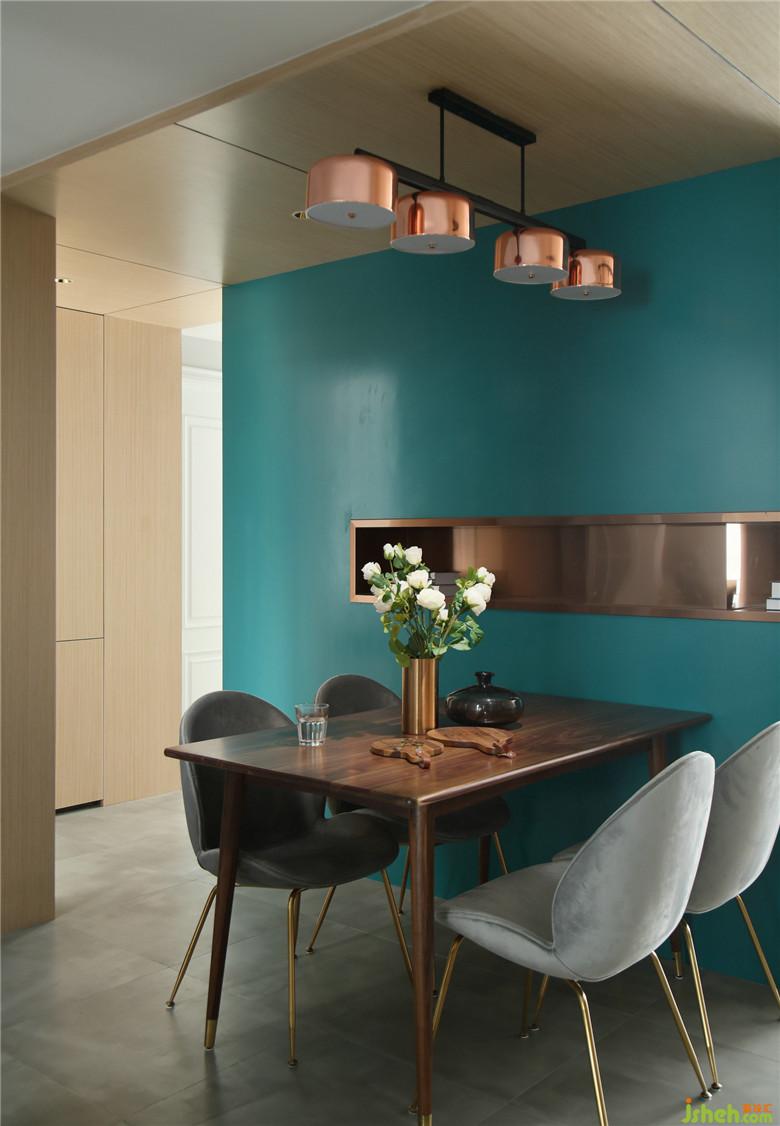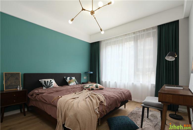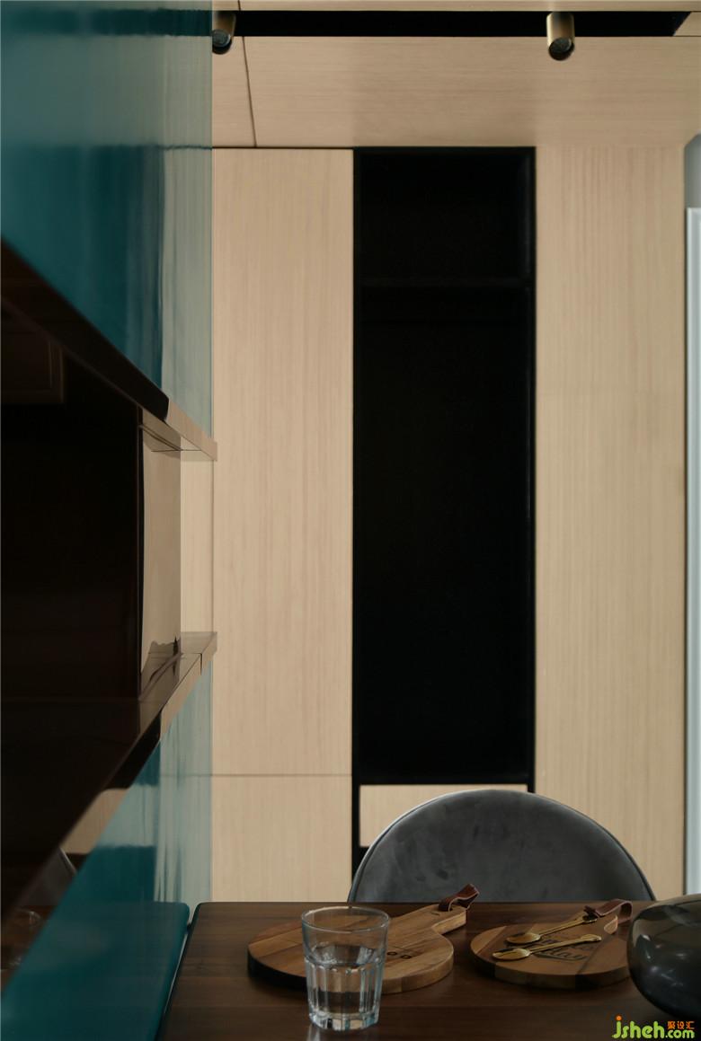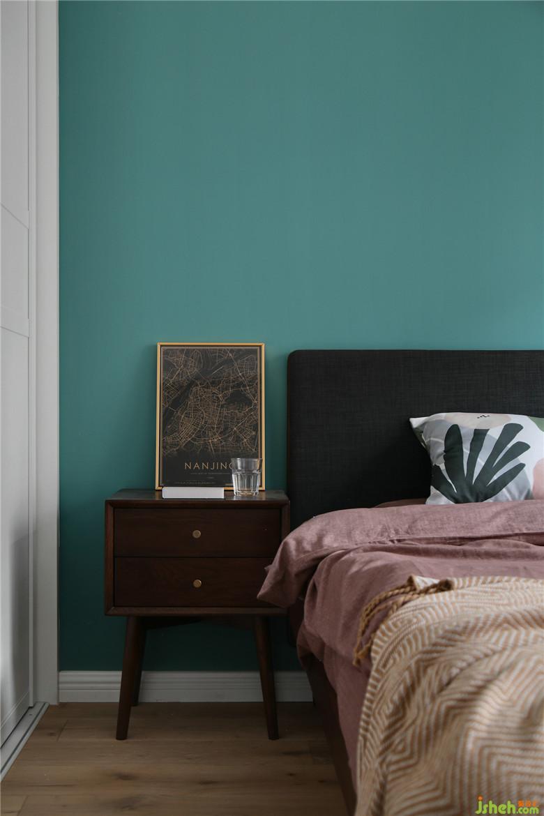 ▲主臥墻面也依然延續(xù)著餐廳藍(lán)綠色調(diào),精心挑選的裝飾畫,柔軟的織品與木質(zhì)家具,色彩與材質(zhì)互相搭配,賦予生活舒適感。