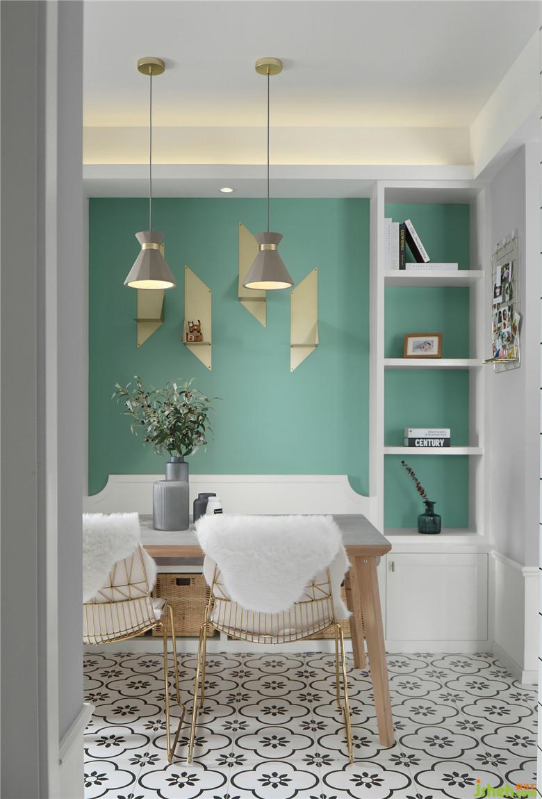 ▲餐廳背景墻室內(nèi)設(shè)計(jì)師依舊選用了屋主中意的綠元素,在白色定制卡座的映襯下,讓這片區(qū)域顯得更加清爽,帶給視覺極大地舒緩。開放式的布局讓餐廳和廚房更加通透明亮,各個(gè)功能區(qū)的聯(lián)系也顯得更加緊密。