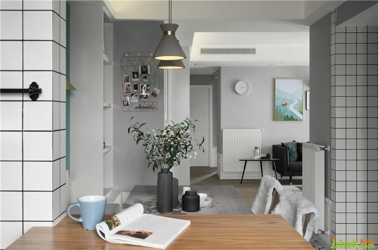 ▲餐廳室內(nèi)設(shè)計(jì)師利用卡座形式,是能夠滿(mǎn)足多人用餐并且具有收納功能,同時(shí)又不失空間上的設(shè)計(jì)美感。滿(mǎn)足屋主需求在廚房與餐廳之間增設(shè)吧臺(tái),也是作為兩個(gè)功能區(qū)之間的過(guò)渡與隔斷。餐廳、廚房區(qū)域以花磚進(jìn)行鋪貼,在這片以純色為主的空間中,結(jié)合造型簡(jiǎn)潔的木質(zhì)餐桌搭配金屬餐椅,讓空間更具變化性及層次感。
