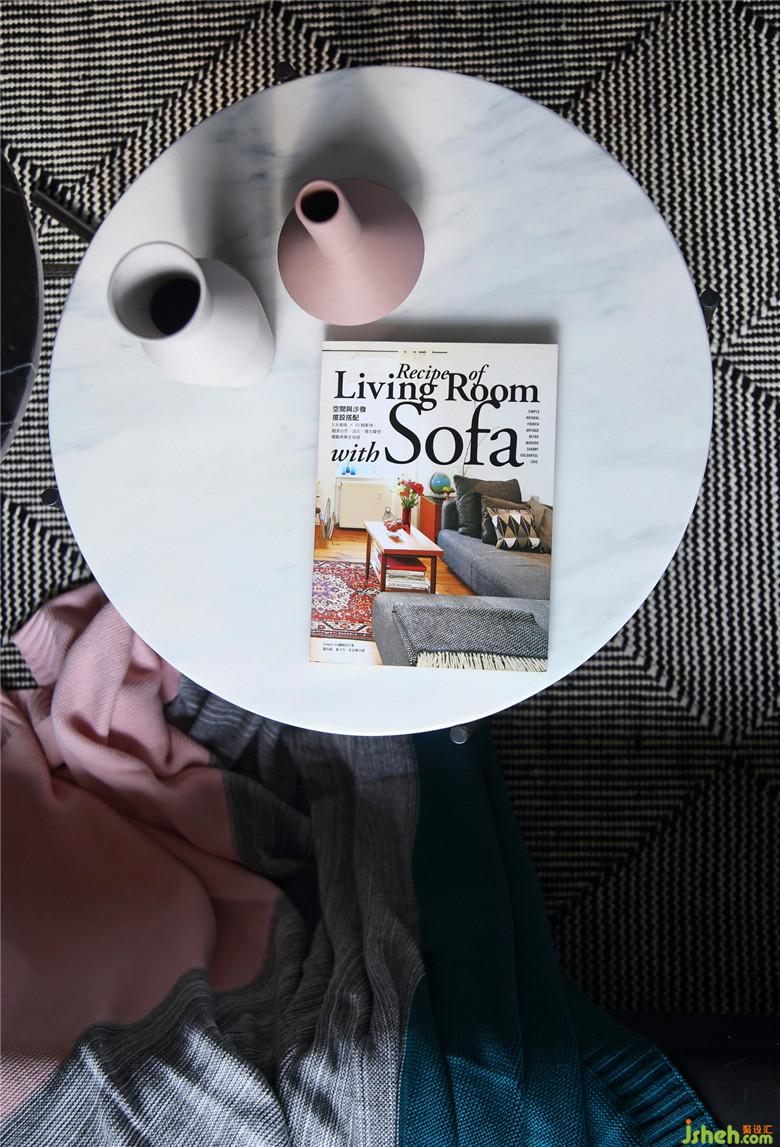 ▲清新而靚麗的色彩,舒適而具有腔調(diào)感的家具,色彩與材質(zhì)的搭配尤為重要。布藝沙發(fā)、大理石茶幾、木質(zhì)單人椅,溫柔與冷硬,在多元素的裝點下,卻能達到一種平衡狀態(tài),和諧且有趣??蛷d的沙發(fā)背景墻室內(nèi)設(shè)計師選擇了少女心滿滿卻不落俗套的臟粉色系,而一些小配飾也與之呼應(yīng),茶幾上的小擺件也精心的選擇了同色系。