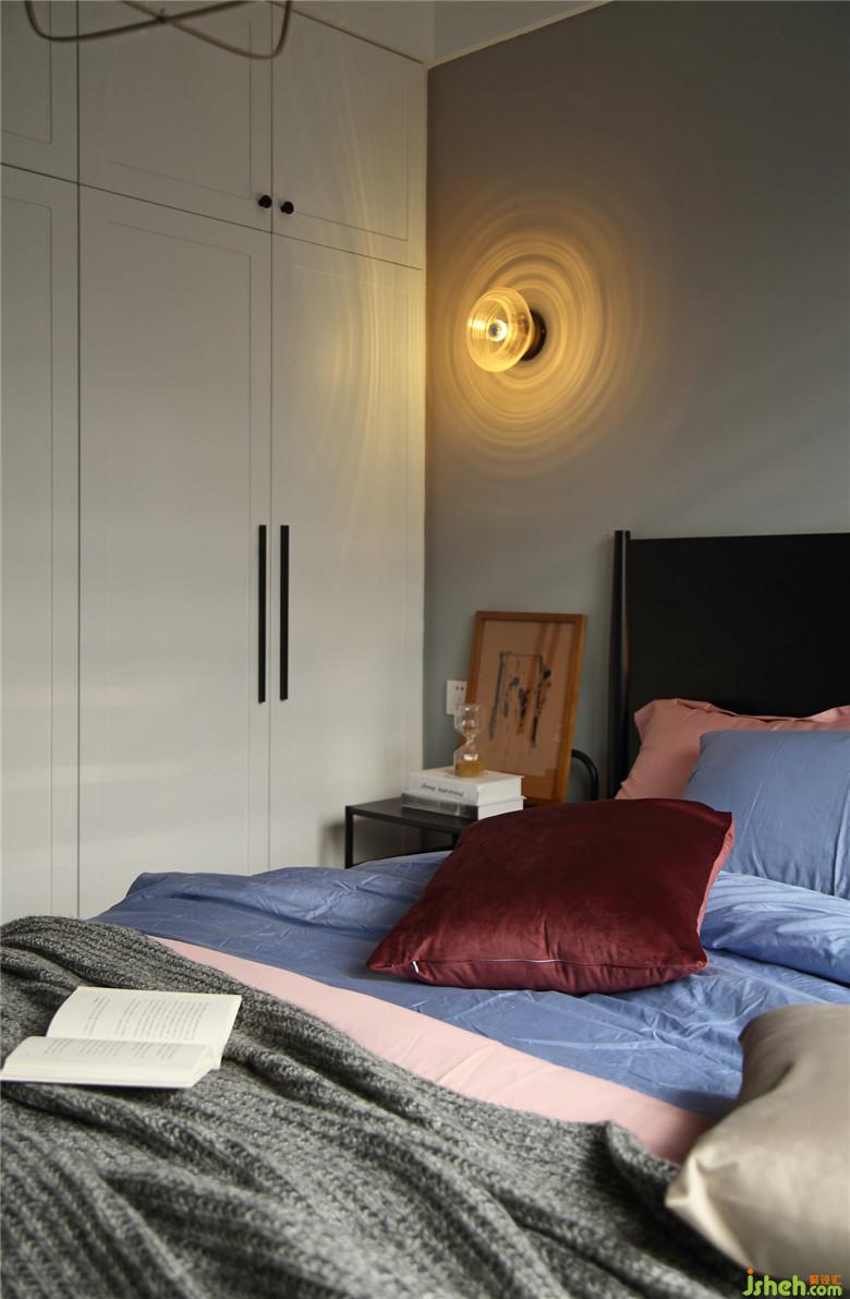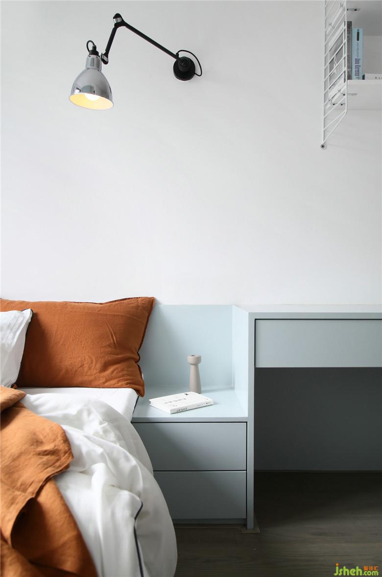 ▲臥室的床品配色與客廳相輔相成,粉+藍(lán),搭配柔軟的針織品、顏色鮮明的個(gè)性裝飾畫,中和了空間中的清淺。而床頭的小臺燈與壁燈發(fā)散出光圈般的光影,讓睡眠與藝術(shù)融為一體。幸福而知足的生活莫過于“暗夜有暖燈,窗外有花開”了吧。