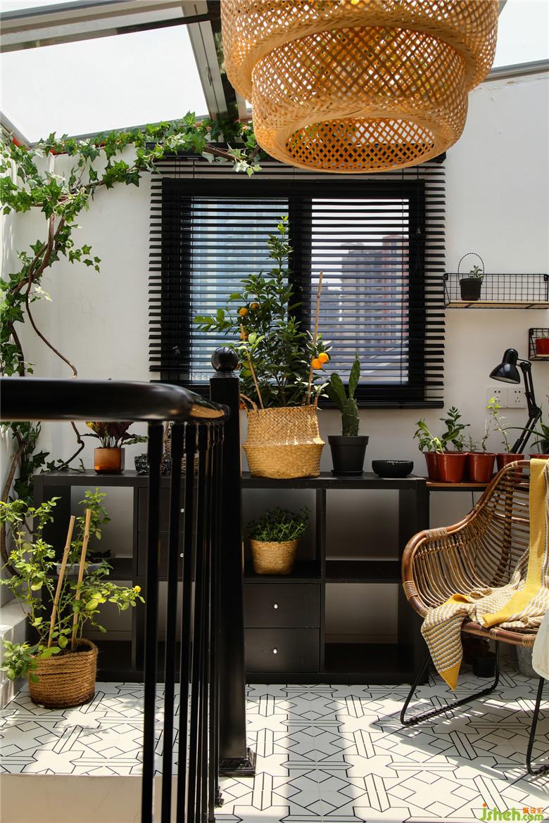 ▲原戶型的樓梯在廚房一角,空間非常狹小,在改造中,設(shè)計(jì)師將次臥室劃出部分區(qū)域來設(shè)置樓梯。原先破舊的露天平臺也改造成了一個(gè)滿滿生活氣息的小庭院。我想這是很多人心里渴望的吧。