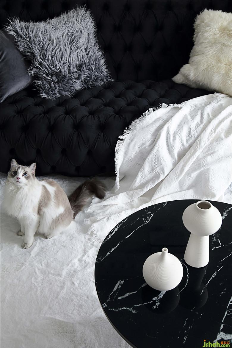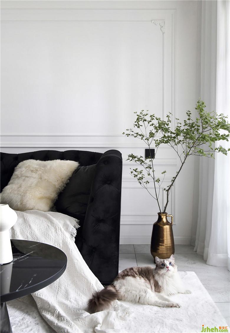 細(xì)枝綠葉總是宜人的,白墻上的石膏線條像是畫框,無飾的雪紡窗簾讓光線透進(jìn)來,映出茶幾的大理石紋就很有天然的質(zhì)感。